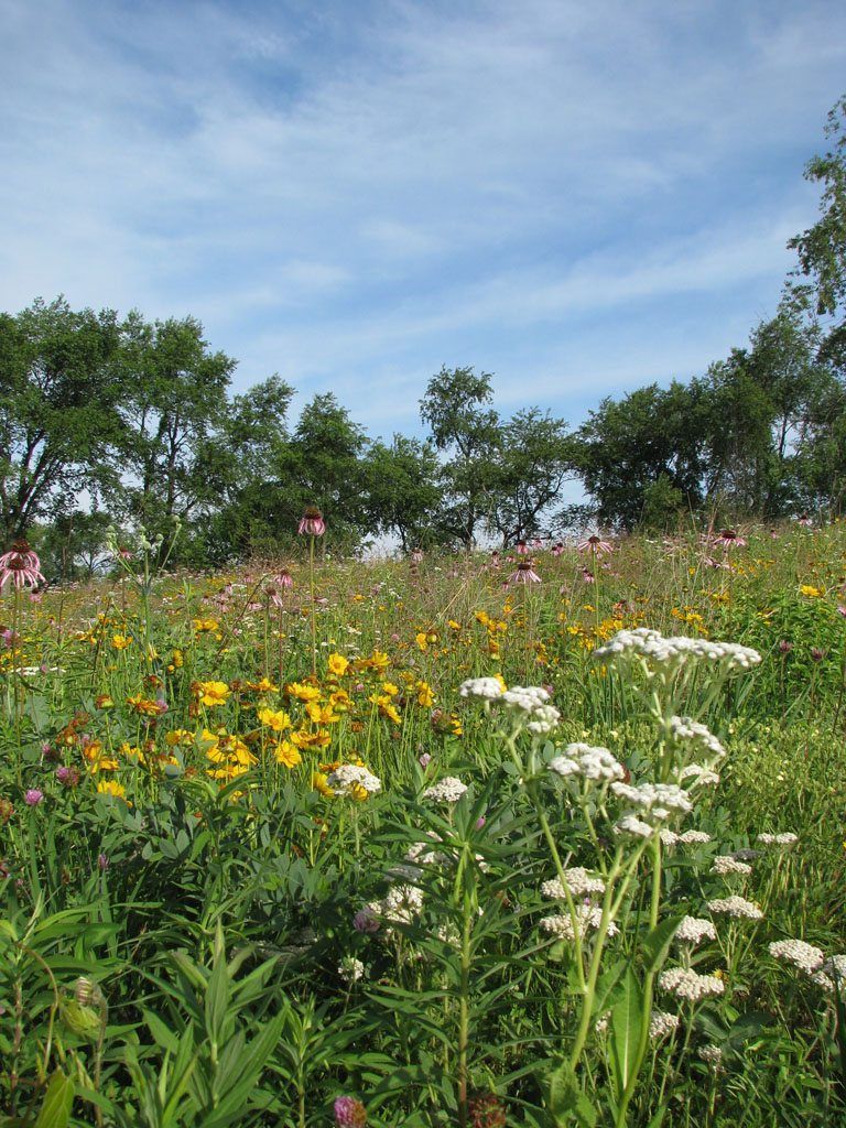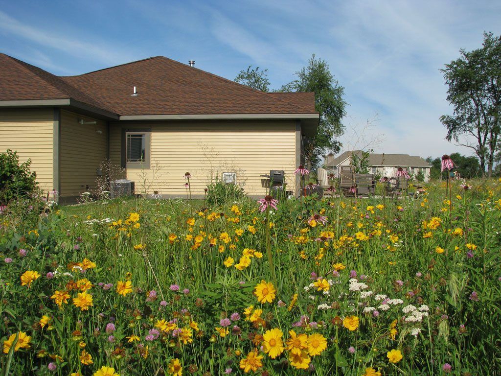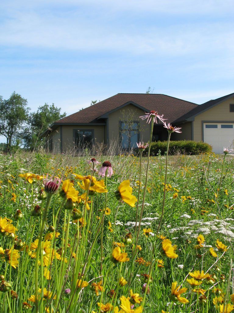 This large, yet simple country lot makes ecological sense with its newly installed diverse native prairie plantings. Scattered within this prairie, carefully located copses of native trees direct views to the rolling hills of southern Wisconsin, while unassuming shrub masses screen utilities and neighboring homesites. Appropriately sized turf areas remain as play spaces for grandchildren, while the taller wildflowers and grasses help to nestle the home into the rural landscape and, quite simply, captures the spirit of the place.