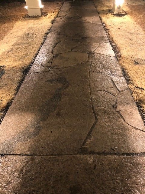 - This natural stone walkway is dry laid, so no mortar, concrete, etc. That means it can move slightly with the change of seasons and not crack.