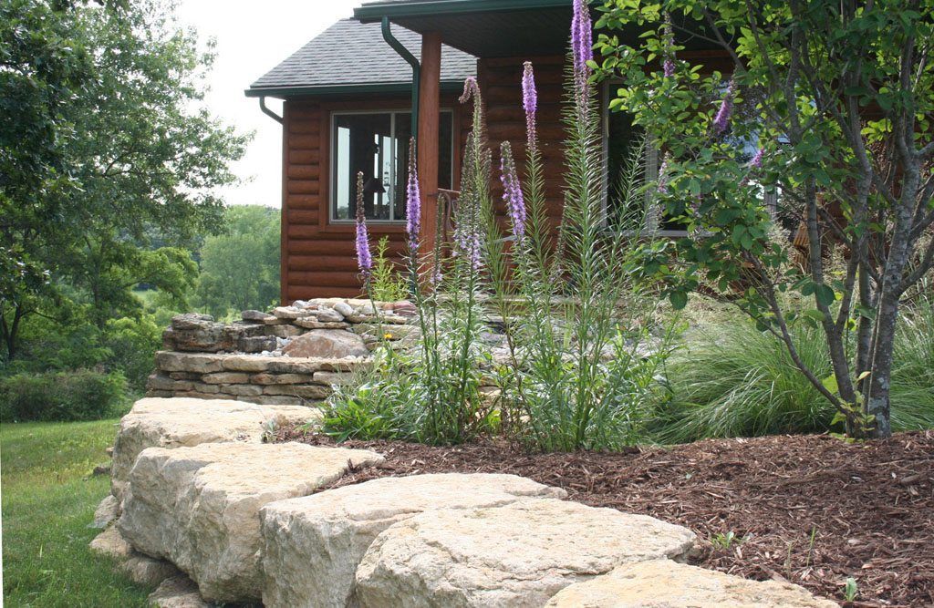 These Albany clients reside in their dream home, but feel misplaced in the multi-acre landscape. To help, Formecology incorporated a native tree & shrub border to give prominence and definition to the boundless front yard and a colorful prairie planting to maintain connectedness to the greater landscape. A water feature within the space is thoughtfully placed to take advantage of views from within the home and the front porch. Local natural stones edge planting beds, boulders & personal artifacts from distant travels compliment the ornamental pond, and native perennials attract the sought after wildlife habitat, which meet all of our clients goals for their front yard area.