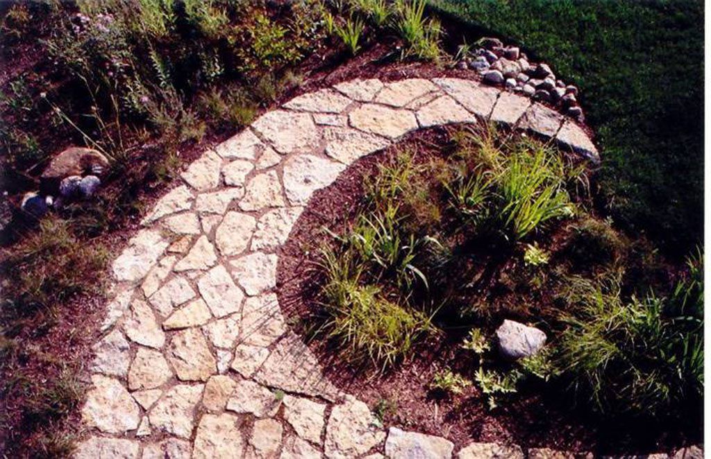 This intriguing galactic rain garden was designed for homeowners on a rural lot with a special interest in stargazing. A flagstone patio intertwines with rain gardens to direct stormwater through a galaxy of native plants and stone. The spiraling landscape feature was designed to be enjoyed both from the ground and from a second story deck where the clients spend many evenings watching the stars. This project shows the integration of artistic form with locally quarried stone and an environmentally beneficial rainwater capture system.