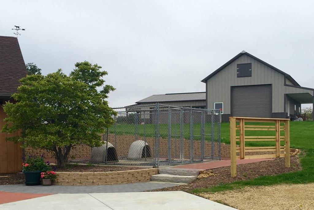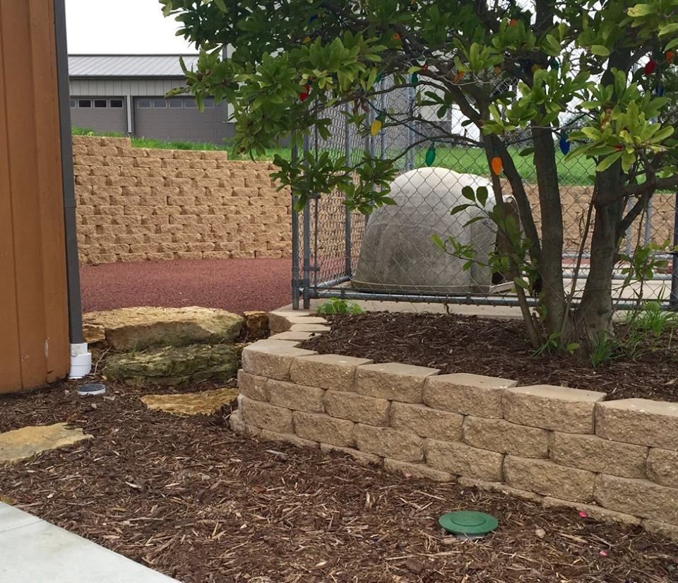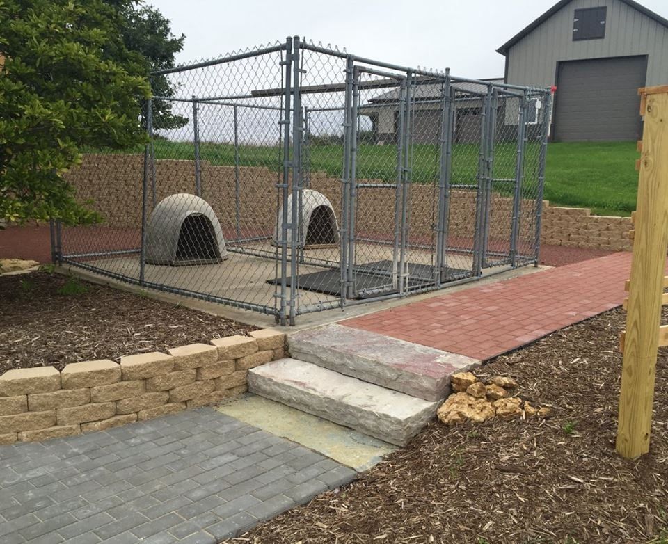 We worked with this Brooklyn client to design an outdoor space that was functional, attractive and close to her 4-legged companions. The design and installation took a severely steep sloped and used modular block to match existing materials onsite to hold the slope back and create the framework for this wonderful outdoor space. Red granite and pavers were used to visually connect to the clients existing walkway that leads to the front door. Stone steps allow for easy navigation with the elevation changes. Rainwater from the garage roof was an issue as well, as it froze every winter on the driveway causing icy conditions. Our solution included an infiltration trench that was buried under the stepping stones and planting bed.